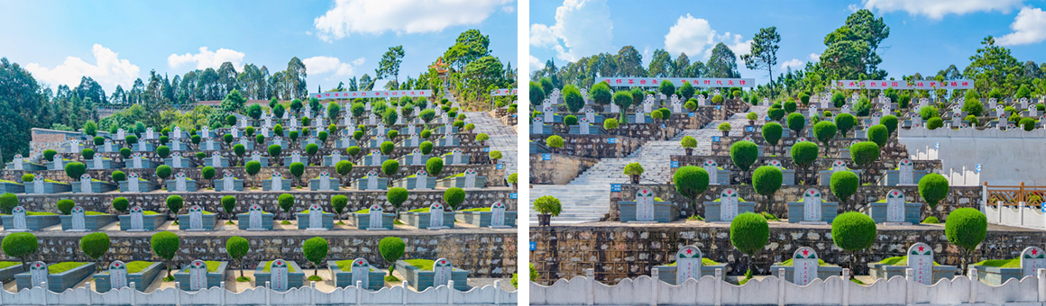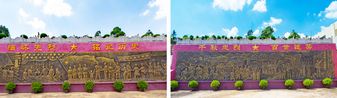 砚山烈士陵园大门为青灰色,门框上用鎏金提着“砚山烈士陵园”和“革命精神万代传,英雄伟绩千秋颂”的对联。